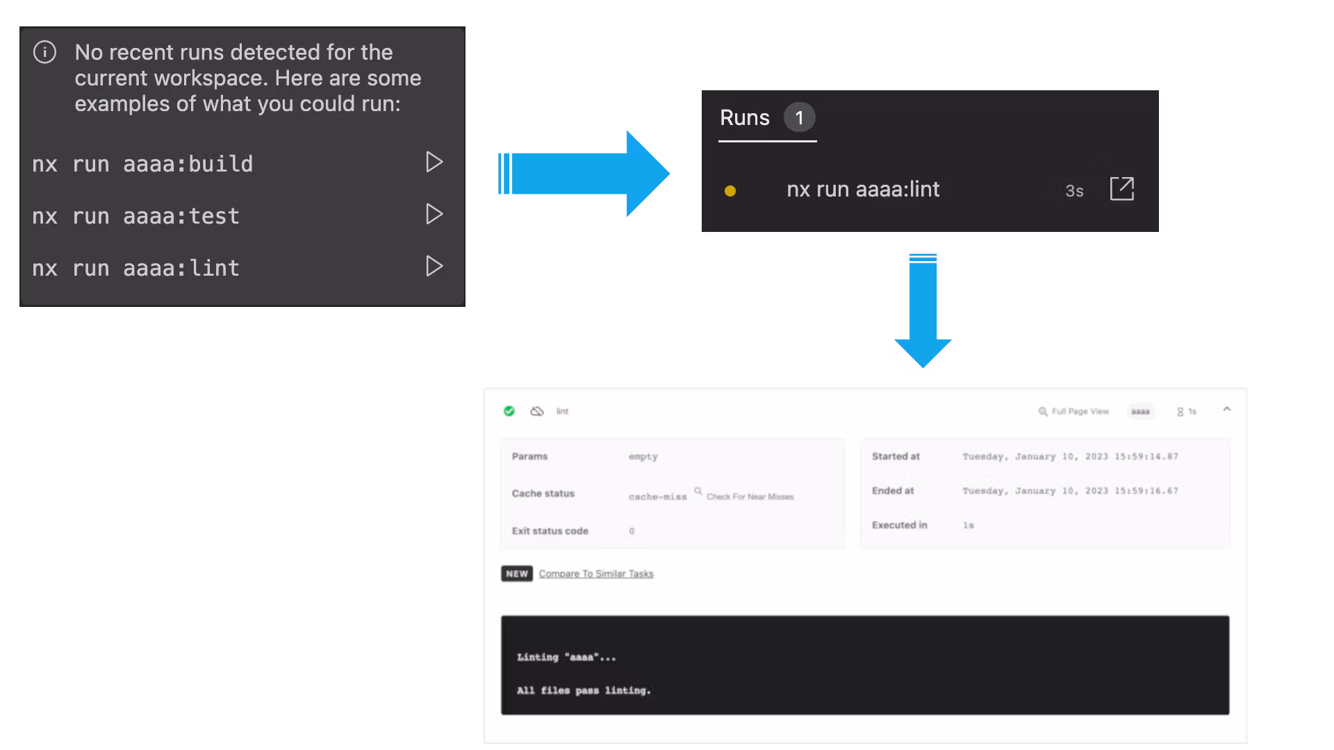 Let's try it out! Select a task to run and see the results in the run list. You can get an even more detailed breakdown in the Nx Cloud web app.